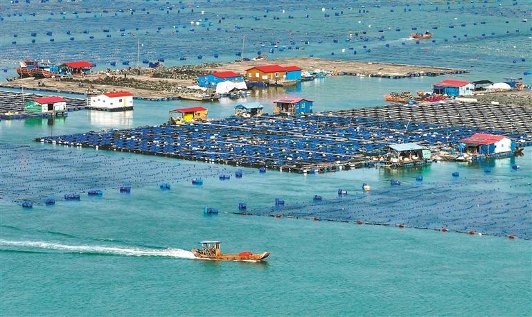 ▼4月14日,福建省宁德市霞浦县溪南镇海洋牧场,养殖工人在作业。