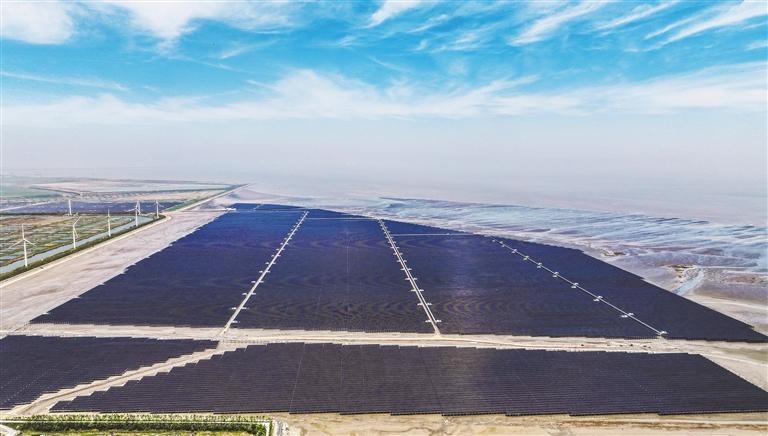 ▲4月29日,集光伏发电、氢能生产和储能于一体的“综合能源利用+滨海生态治理”项目——国华投资江苏分公司如东“光氢储一体化”40万千瓦光伏项目顺利实现全容量并网发电。徐书影摄(中经视觉)