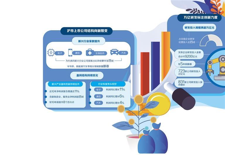 新兴产业公司顺势成长,上市公司结构不断优化。近10年,以电子、通信、生物医药、汽车为代表的新兴行业公司家数占比持续攀升至四成,半导体、新能源汽车等细分领域数量翻番。盈利贡献同步抬升,新兴行业公司近10年净利润复合增速达11%,较传统行业高出5个百分点,贡献制造业、服务业净利润超四成,较10年前提升8个百分点。
