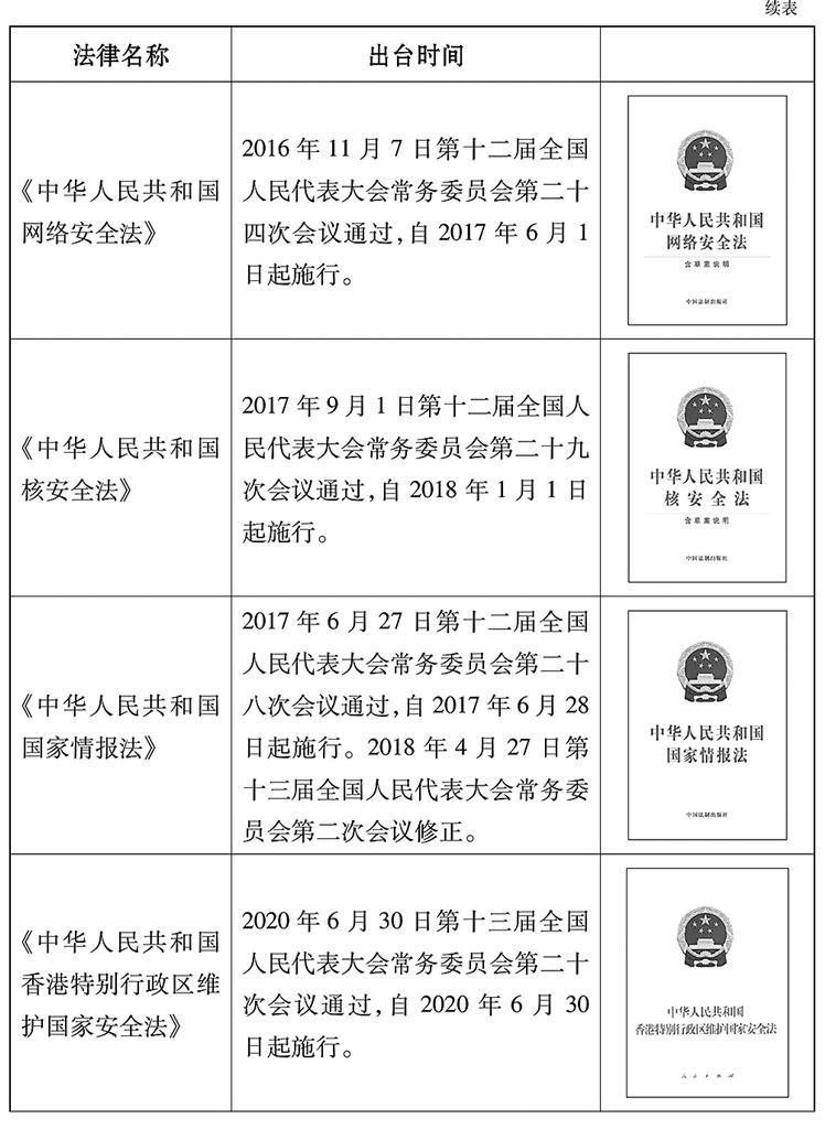 进入新时代,中国全面深化改革,以巨大的政治勇气开启国家安全体系和能力现代化建设进程,通过设立中央国家安全委员会,建立集中统一、高效权威的国家安全领导体制和工作机制;出台以国家安全法为统领的一系列国家安全法律法规,初步形成国家安全法律体系;制定《国家安全战略纲要》、《国家安全战略(2021—2025年)》,出台一系列重点领域国家安全战略和政策,初步形成国家安全战略体系和政策体系;加强风险防范、应急处置,全领域覆盖、多层级运转的风险监测预警体系和大安全大应急框架初具雏形;调整国家安全力量布局,加强重点领域安全能力建设,加强国家安全教育,建立起国家安全体系和能力现代化的四梁八柱,为下一步攻坚克难、不断完善奠定了良好基础。