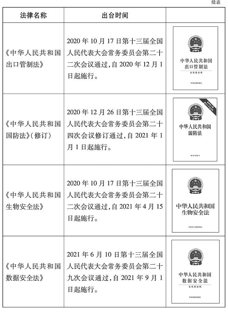 完善国家安全法治体系。积极推进重点领域、新兴领域、涉外领域国家安全立法,完善涉外法律法规体系和法治实施体系,健全国家安全党内法规体系,打通立法、执法、司法、普法的痛点堵点。