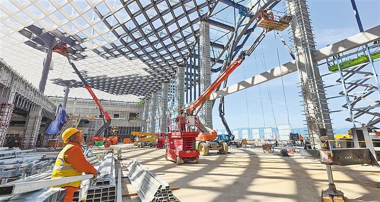 5月12日,工人在贵州省盘(州)兴(义)铁路兴义南站施工。该项目建成后,将大幅缩短黔西南地区与贵阳的时空距离,促进区域经济发展。