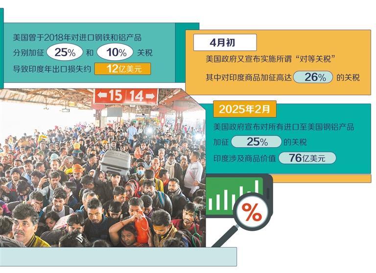 在美国总统特朗普首个任期,曾于2018年以“国家安全”为由对进口钢铁和铝产品分别加征25%和10%的关税,导致印度年出口损失约12亿美元。之后美国虽然对欧盟、加拿大等给予了关税豁免,但印度始终不在其列,最终导致印度在2019年拟定了对28种美国输印商品加征关税的报复性举措。
