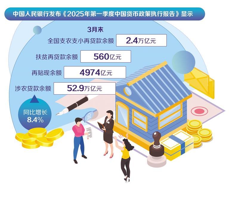 总的来看,我国涉农信贷稳步增长。国家金融监督管理总局数据显示,截至2025年2月末,涉农贷款余额为51.88万亿元,同比增长8.9%;2025年前两个月新发放的普惠型涉农贷款平均利率降至4.52%。