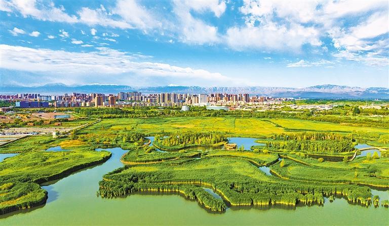 五月二十四日,雨后的甘肃省张掖国家湿地公园,美景怡人。近期,公园推出多项便利举措,方便游客游玩,让游客感受生态湿地的魅力。杨永伟摄(中经视觉)