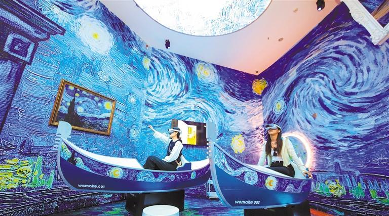 ▶4月20日,游客在山东省青岛世博园XR梵高数字艺术体验馆体验数字产品。