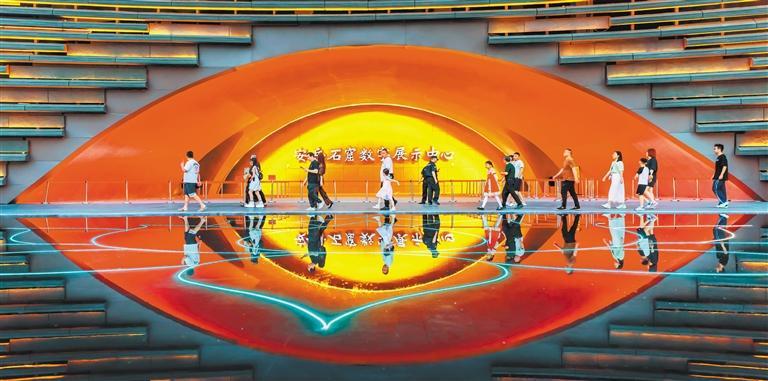 ▲5月1日,四川省资阳市安岳县石窟数字展示中心,市民在休闲游玩。