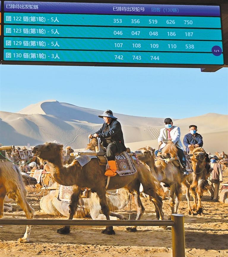 ▲5月24日,甘肃省敦煌市鸣沙山月牙泉景区上线运营大漠乘驼数字化系统,提升游客体验。张晓亮摄(中经视觉)