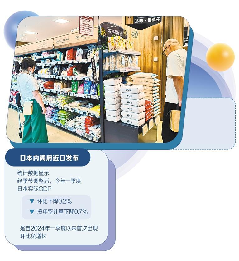 日本内阁府近日发布统计数据显示,经季节调整后,今年一季度,日本实际国内生产总值(GDP)环比下降0.2%,按年率计算下降0.7%,是自2024年一季度以来首次出现环比负增长。分析认为,高物价和对未来经济形势的不确定性导致内需乏力,加之美国政府加征关税举措影响正在逐步显现,日本经济正在遭受内外部压力夹击,未来可能面临更严峻考验。
