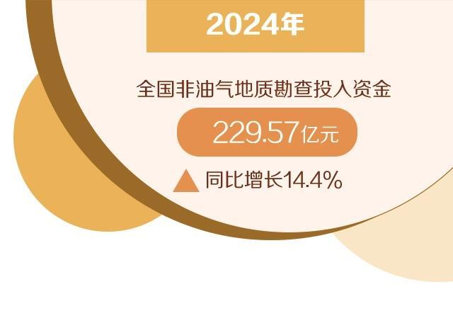 自然资源部办公厅近日印发的《2024年全国非油气地质勘查统计年报》显示,2024年全国非油气地质勘查投入资金229.57亿元,同比增长14.4%,连续4年实现正增长。