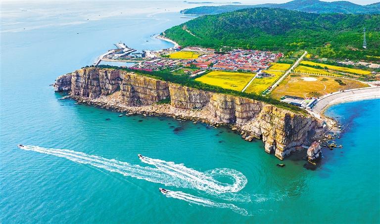 5月29日,山东省烟台市大黑山岛,风光秀丽,气候宜人。岛上现有景点10余处,以其独特的海蚀地貌和奇礁异石特色,吸引众多游客游览。孙立君摄(中经视觉)