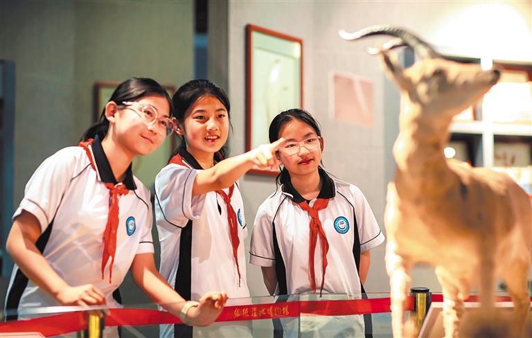 ▲5月22日,学生来到甘肃省张掖国家湿地公园博物馆参观研学,近距离观察珍稀动物标本。数据显示,近年来我国研学游市场规模持续扩大。杨 潇摄(中经视觉)