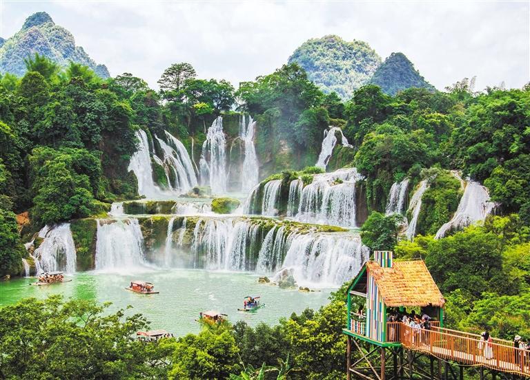 ▼6月1日,广西壮族自治区崇左市大新县德天瀑布景区游人如织。
