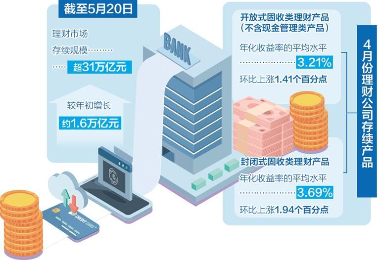 我国银行理财市场迎来关键发展节点。据万得数据统计,截至5月20日,理财市场存续规模超31万亿元,较年初增长约1.6万亿元。这一增长凸显了银行在低利率环境下的业务转型成效,同时也折射出市场资金流向与资产配置策略的变化趋势。