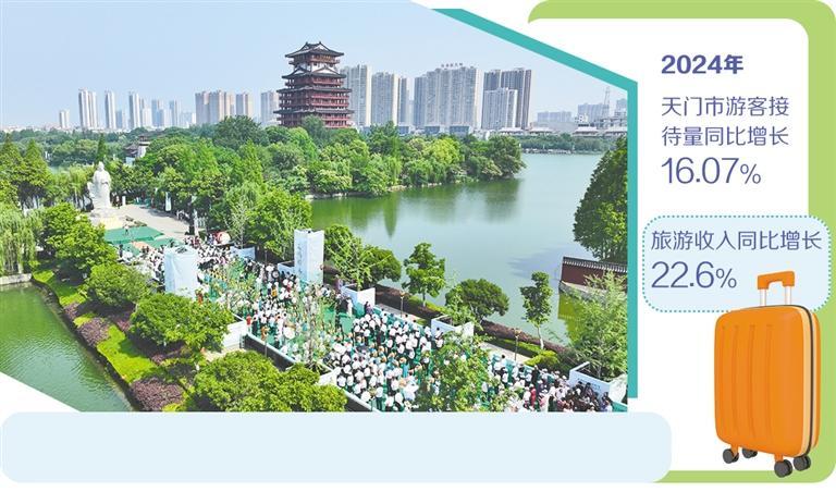 天门还积极举办节会活动,持续丰富旅游业态。陆羽茶文化旅游节期间,名优茶产品展、茶圣文化之旅、茶研学等活动撬动茶产业与旅游业协同发展。精心策划亲子休闲、赏花采摘观鸟休闲、特色美食休闲、国家文物考察观光、茶产业茶文化体验观光等一批精品旅游线路,支持乡镇举办特色文旅活动,让文旅热度从城市蔓延至乡村。数据显示,2024年,天门市游客接待量同比增长16.07%,旅游收入同比增长22.6%。