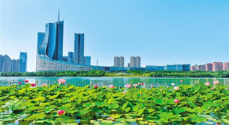 6月6日,安徽省合肥市蜀山区天鹅湖的荷花竞相绽放、清香四溢,成为夏日一道风景线。