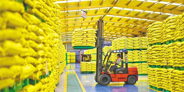 6月5日,湖北省宜都市兴发集团磷复肥生产车间,员工驾驶着叉车来回穿梭,将一袋袋磷复肥产品装车销往河南、甘肃等地区。