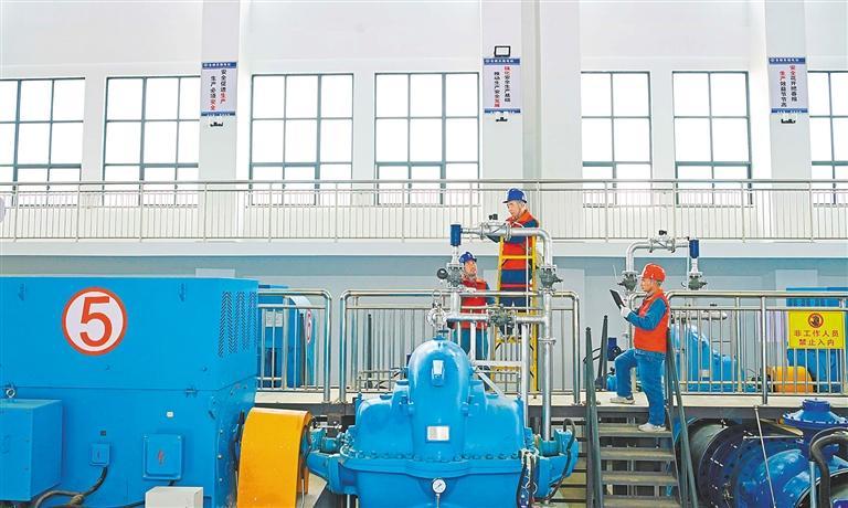 ◀6月16日,技术人员在安徽省滁州市全椒县一电站内进行设施检修维护,保障夏季高峰用电和防汛抗旱用电。