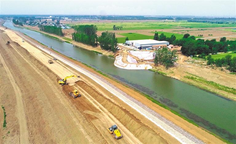 ◀6月16日,天津东淀和文安洼蓄滞洪区工程子牙河段堤身加高完工,为安全度汛奠定基础。