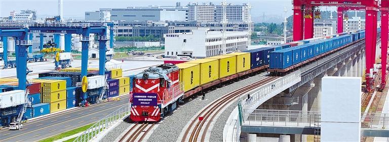 6月27日,浙江义乌(苏溪)国际枢纽港,一列满载货物的海铁联运班列启程开往宁波舟山港,标志着义乌(苏溪)国际枢纽港正式开港运营。据了解,义乌(苏溪)国际枢纽港将海港作业模式前置到内陆港区,依托甬金铁路,实现港务、船务、关务一体化发展。