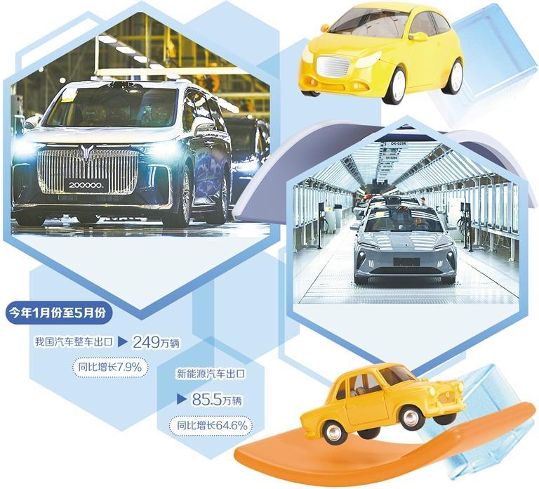 在电动化和智能化驱动下,全球汽车产业区域格局发生深刻变化。我国新能源汽车产业崛起,并建立起较为完善的产业链体系。最新数据显示,今年1月份至5月份,我国汽车整车出口249万辆,同比增长7.9%;新能源汽车出口85.5万辆,同比增长64.6%。