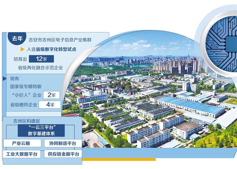 吉州区将数字化转型作为产业链升级的“关键一跃”,构建起“一云三平台”数字基建体系(产业云脑、协同制造平台、工业大数据平台、供应链金融平台)。去年,吉州区电子信息产业集群入选省级数字化转型试点,培育出12家省级两化融合示范企业。江西华立源锂能投资1.2亿元建设数字工厂,锂电池生产线自动化率达95%,产品出口东南亚市场;新赣江药业通过“企业特派员”制度,8个月完成北交所上市申报,成为全省生物医药领域数字化转型标杆。