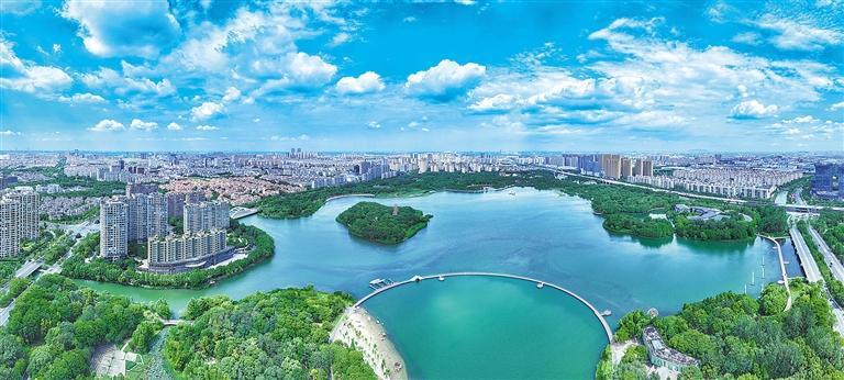 7月7日,江苏省张家港市暨阳湖生态公园草木葱茏,水清岸绿,一幅夏日生态画卷徐徐展开。近年来,当地以建设生态宜居城市为目标,积极推动水系修复,城市生态涵养功能不断提升。施柏荣摄(中经视觉)