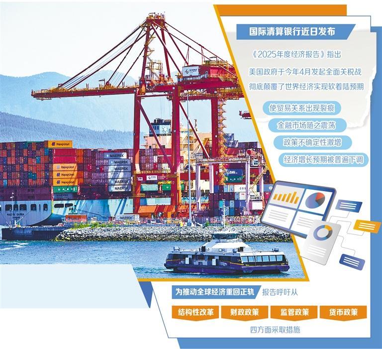 近日,国际清算银行发布《2025年度经济报告》指出,美国政府于今年4月发起的全面关税战,彻底颠覆了世界经济实现软着陆的预期,使长期建立的贸易关系出现裂痕,金融市场随之震荡,政策不确定性激增,经济增长预期被普遍下调。企业推迟投资、减少招聘,家庭增加预防性储备等软性指标,都清楚地预示着美国加征关税将对全球经济增长造成严重冲击。