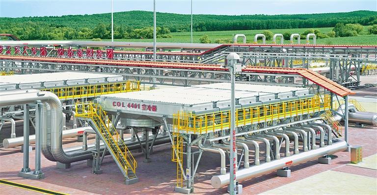 最新数据显示,截至7月10日,我国“北气南下”能源大通道累计输气量突破1000亿立方米。该通道北起黑龙江黑河,南至上海,惠及沿线4亿多人口。这是“北气南下”能源大通道黑河首站的空冷器。新华社记者 王 松摄