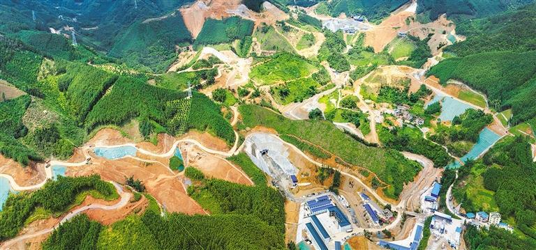 7月11日,广西来宾抽水蓄能电站建设现场,工人正在加紧施工。该电站总投资81.3亿元,建成后预计年均发电量14亿千瓦时,每年可节约标准煤约53.9万吨。
