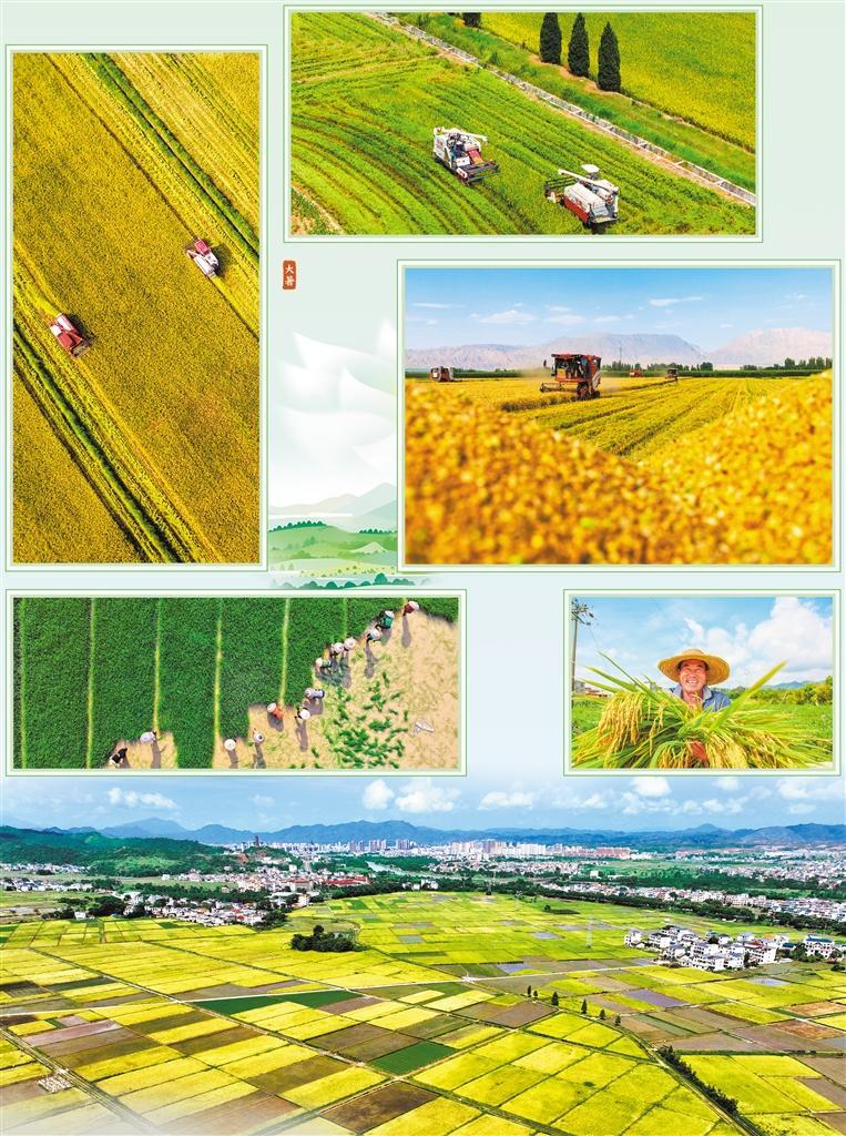 7月15日,浙江金华市金东区塘雅万亩粮田粮食功能示范区,农机手抢抓农时收割早稻。7月22日是大暑节气,“大暑不割禾,一天少一箩”,此时节是“双抢”关键期,要及时收割早稻和种植晚稻。杨梅清摄(中经视觉)
