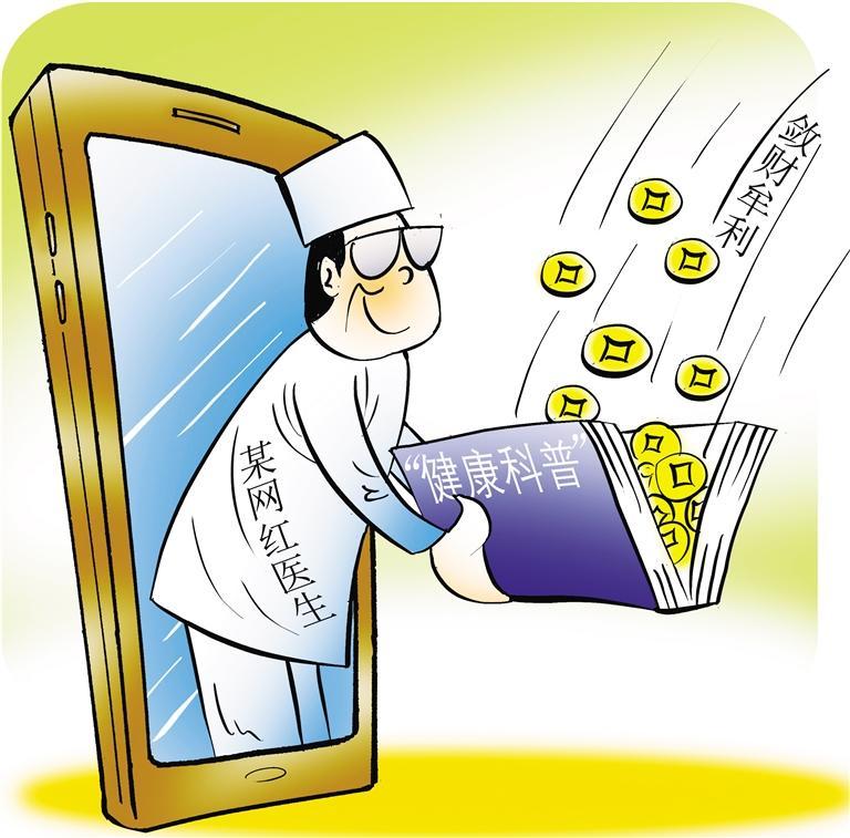 最近,在一些短视频平台上,个别“网红医生”把健康科普当作牟利工具,假借科普名义违规导医导诊,线上问诊、线下引流,直播带货甚至高价开药,还有人通过夸大治疗效果、虚构病例误导公众、敛财牟利。如此乱象,令人忧虑。在互联网健康科普大潮中,医务人员从诊室走向网络,把健康知识传播到千家万户,值得肯定。然而,少数医生“夹带私货”,严重违反了互联网诊疗管理和广告管理相关法律法规,不仅会损害医疗行业的公信力,而且会危害人民群众的生命健康。健康科普要“靠谱”,不能“离谱”。净化健康科普环境,既要规范医务人员的行为,也要对伪专家重拳出击。有关部门应联合执法“亮剑”,加大对互联网健康科普乱象的整治力度,让不法者付出应有的代价,维护人民群众的健康权益。
