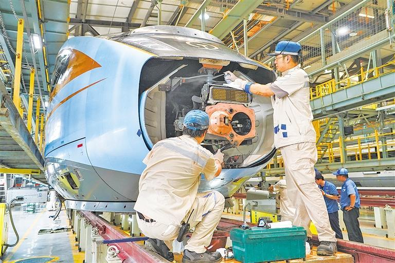 暑运正酣,国铁集团郑州局郑州动车段机械师抓紧时间窗口对动车组进行保养维护。为保障暑运期间动车组运行安全,该动车段紧扣季节性安全特点,全面排查关键部位,确保各设备状态良好。崔轩豪摄(中经视觉)