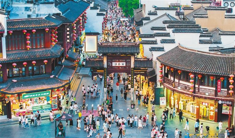 7月6日,江苏省南京市夫子庙步行街游人如织。该市不断打造新业态、新场景,激发消费市场活力。