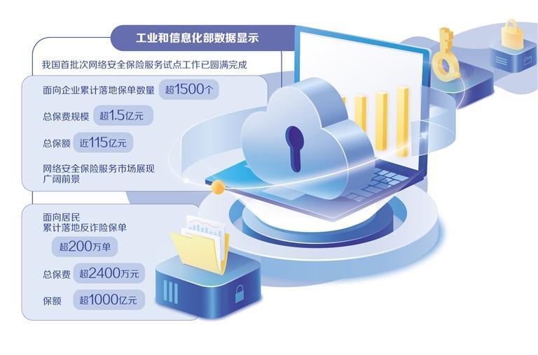 近年来,随着数字经济快速发展,网络安全风险与挑战日益严峻。来自工业和信息化部的最新数据显示,我国首批次网络安全保险服务试点工作已圆满完成,面向企业累计落地保单数量超1500个,总保费规模超1.5亿元,总保额近115亿元,网络安全保险服务市场展现广阔前景;面向居民,累计落地反诈险保单超200万单,总保费超2400万元,保额超1000亿元。