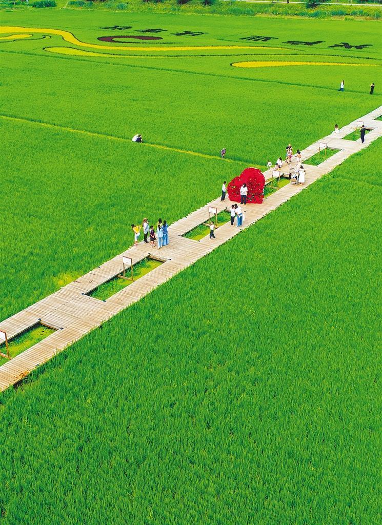 七月三十日,云南省昭通市鲁甸县桃源回族乡万亩稻田观光园风景如画。近年来,当地以生态农业为基础,打造集农业生产与旅游观光于一体的综合性园区。张 波摄(中经视觉)