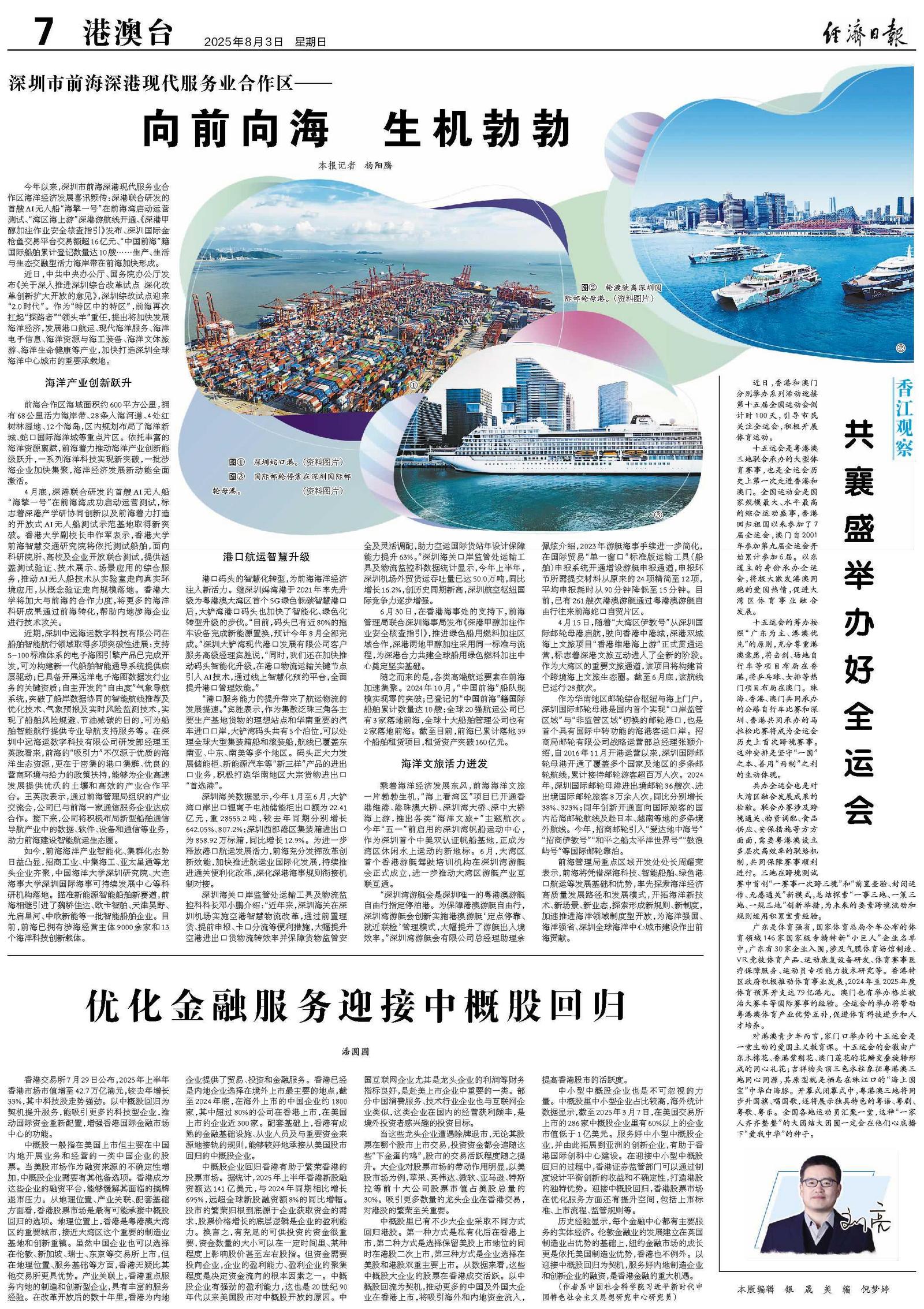 香港交易所7月29日公布,2025年上半年香港市场市值增至42.7万亿港元,较去年增长33%,其中科技股走势强劲。以中概股回归为契机提升服务,能吸引更多的科技型企业,推动国际资金重新配置,增强香港国际金融市场中心的功能。