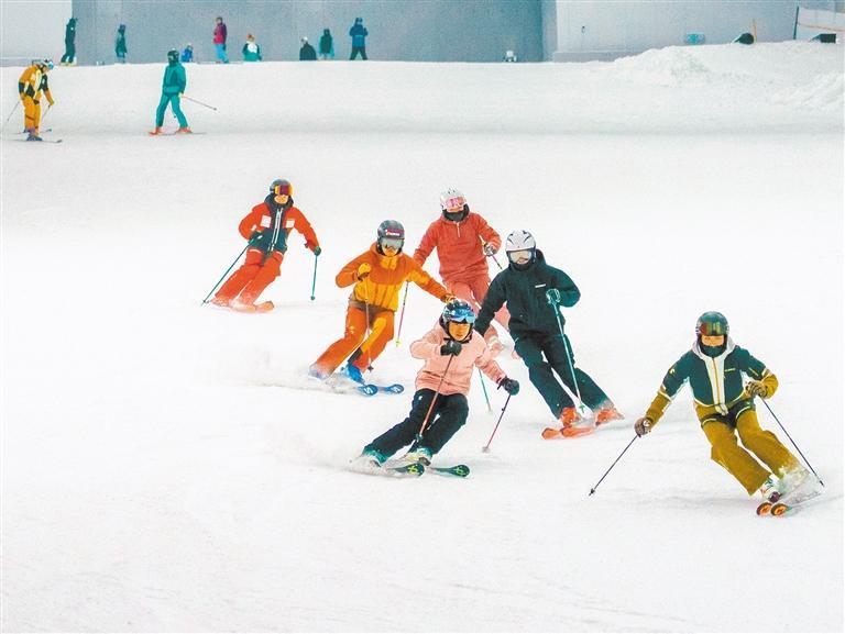 6月13日,河北省石家庄市正定县,滑雪爱好者在室内滑雪场滑雪。