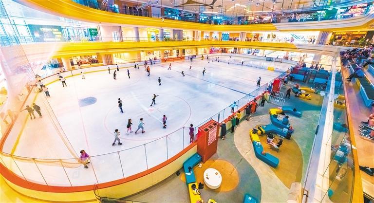 7月15日,江苏省苏州市,市民在苏州中心冠军冰场滑冰,乐享夏日清凉。