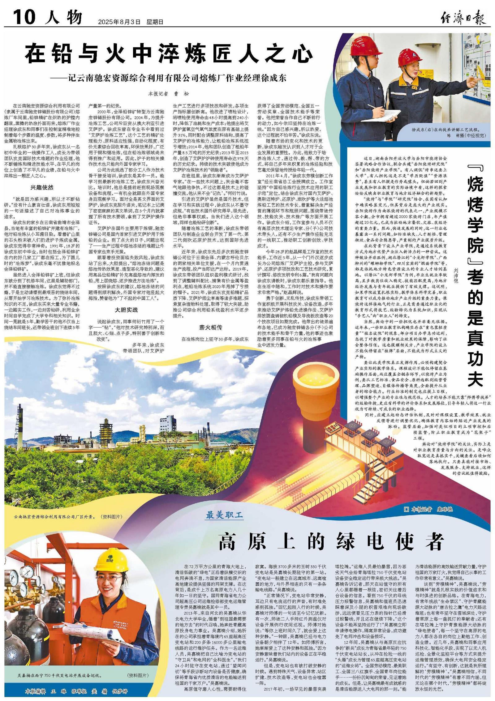 扎根熔炉30多年来,徐成东从一名初中毕业的一线操作工人,成长为带领团队攻克国际技术难题的作业经理,他不断锤炼和精进技能水平,在平凡的岗位上创造了不平凡的业绩,在铅与火中淬炼出一颗匠人之心。