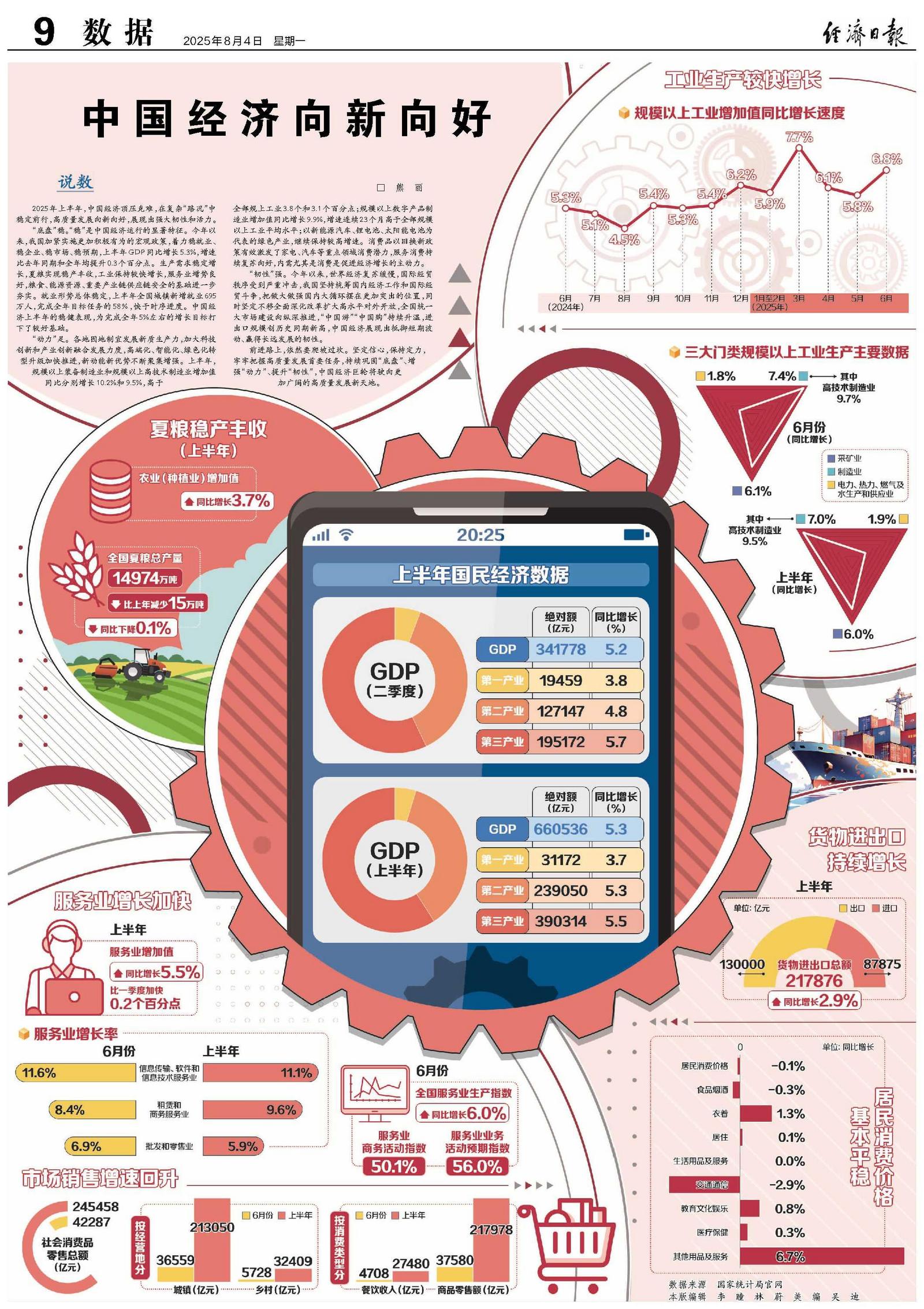 2025年上半年,中国经济顶压克难,在复杂“路况”中稳定前行,高质量发展向新向好,展现出强大韧性和活力。