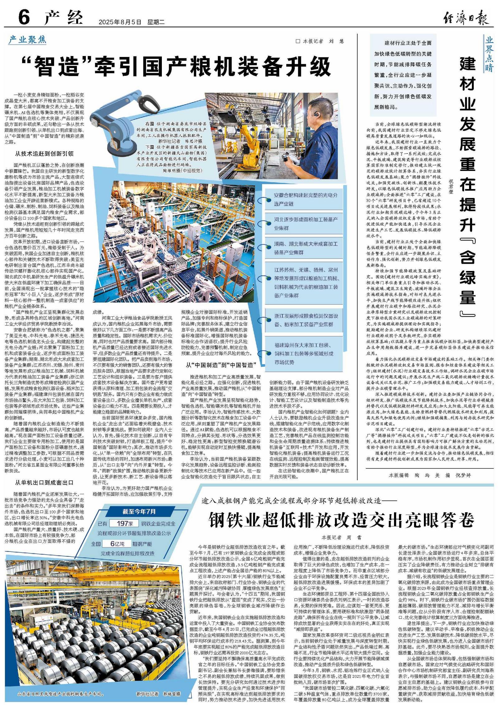 今年是钢铁行业超低排放改造收官之年。截至今年7月,已有197家钢铁企业完成全流程或部分环节超低排放改造公示,全国6亿吨粗钢产能完成全流程超低排放改造,3.5亿吨粗钢产能完成重点工程改造,上述产能占全国总产能的80%以上。