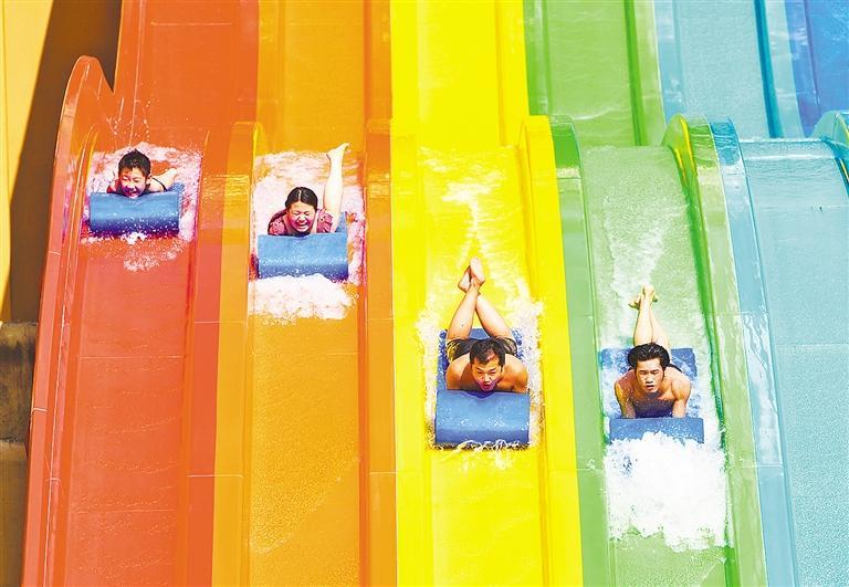 8月3日,市民在江西省宜春市袁州区湖田镇方特水上乐园戏水消暑。持续的高温天气让漂流、露营、水上乐园等项目的热度攀升,当地积极拓展消费新场景,丰富消费体验,满足市民和游客多样化、个性化需求。周 亮摄(中经视觉)