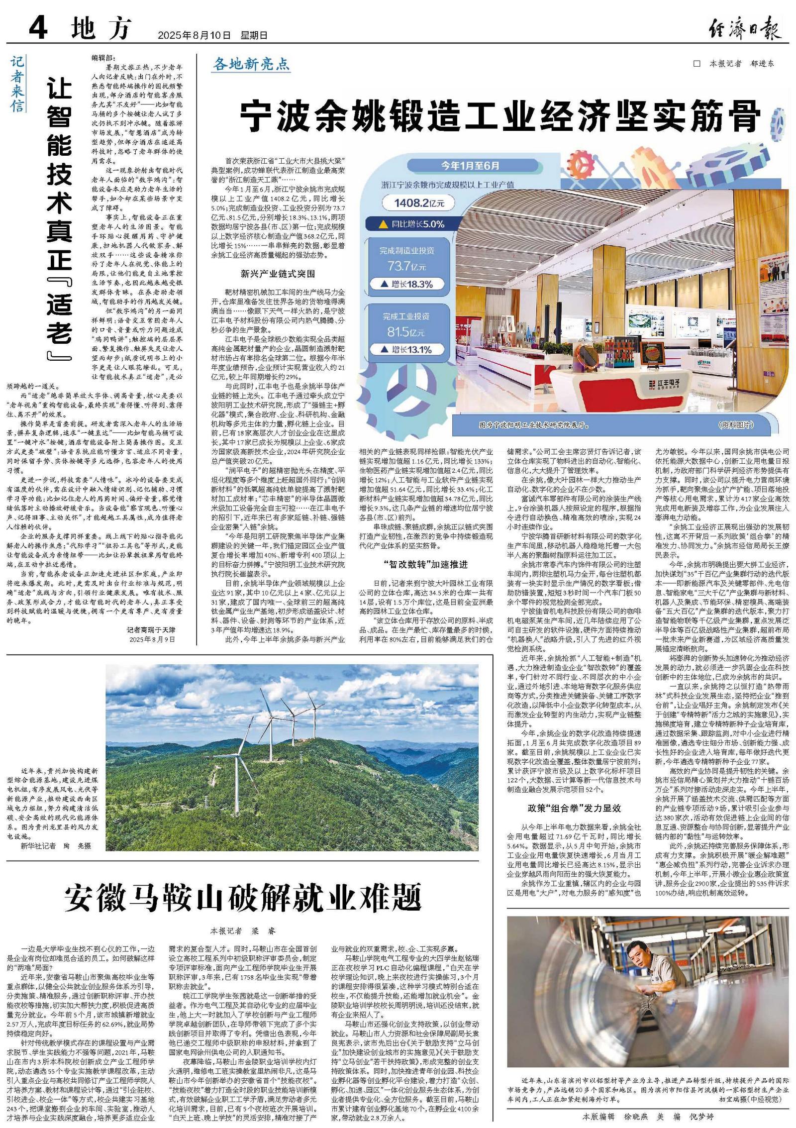 此外,余姚还持续完善服务保障体系,形成有力支撑。余姚积极开展“暖企解难题”“惠企减负担”系列行动,完善企业诉求办理机制,今年上半年,开展小微企业惠企政策宣讲,服务企业2900家,企业提出的535件诉求100%办结,响应机制高效运转。