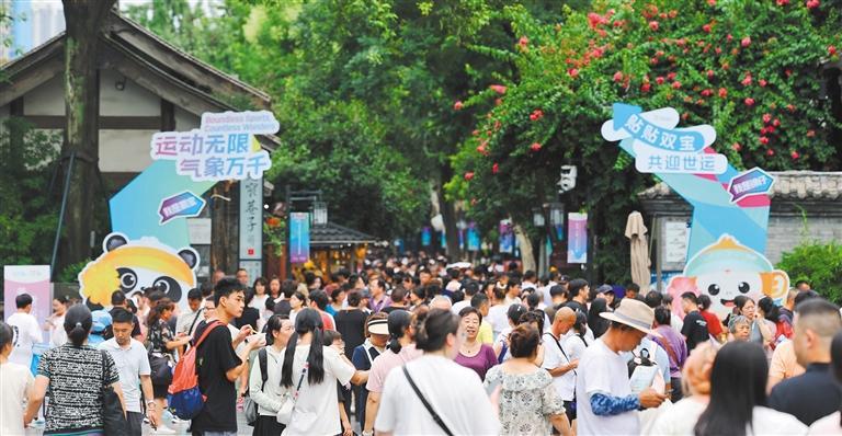 大型赛事的举办,对消费的拉动效应十分明显。围绕世运会,成都策划举办了“世运·天府”文化艺术展,打造了“国宝粉丝探访之旅”“烟火锦城漫游之旅”等7条主题文旅体验线路,推出了100个精品消费新场景,“世运热”在社区、商圈、学校、企业持续升温。