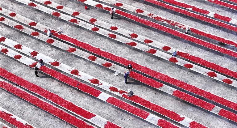 8月11日,在新疆生产建设兵团第二师二十一团戈壁滩一处晒场上,职工群众正在晾晒番茄。近年来,兵团第二师二十一团依托订单农业模式,与国内外客商建立长期合作,每年产出的番茄干远销美国、意大利、巴西等国,番茄产品销售价格的提高,进一步增加了种植户收入。谢江林摄(中经视觉)