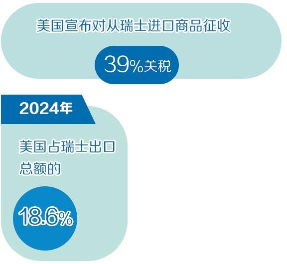 这对瑞士来说无疑是重击。瑞士经济高度依赖国际市场,而美国是其关键出口目的地。2024年,美国占瑞士出口总额的18.6%。瑞士制药业发达,药品出口对其经济意义重大。瑞士专家估算,若美国对瑞士的关税政策最终实施,将对瑞士经济造成显著影响。如果制药行业也被征收39%关税,瑞士国内生产总值(GDP)可能下滑0.7个百分点。
