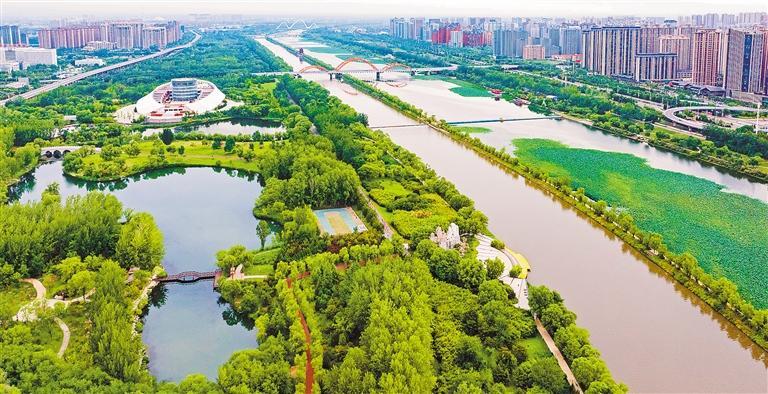 8月10日,山西省临汾市汾河文化生态景区内林木茂盛,景色迷人。近年来,临汾市加大生态园林城市建设力度,通过实施山水园林、亲水平台、景观小品、生态步道等多元化设计规划,打造丰富多变、景色宜人的城市生态走廊,成为市民和游客休闲锻炼、赏景游玩的又一好去处。