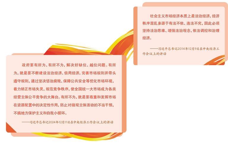 更好发挥政府作用,要求政府管好那些市场管不了或管不好的事情。法治能够厘清政府与市场的边界,确保政府履行职能到位而不越位、不缺位,做到法定职责必须为、法无授权不可为。深入推进依法行政,既能提高宏观调控的针对性有效性,推动生产要素畅通流动、各类资源高效配置、市场潜力充分释放;又能为行政权力立规矩、划红线,规范行政决策程序,避免违背市场规律的不合理行政干预。
