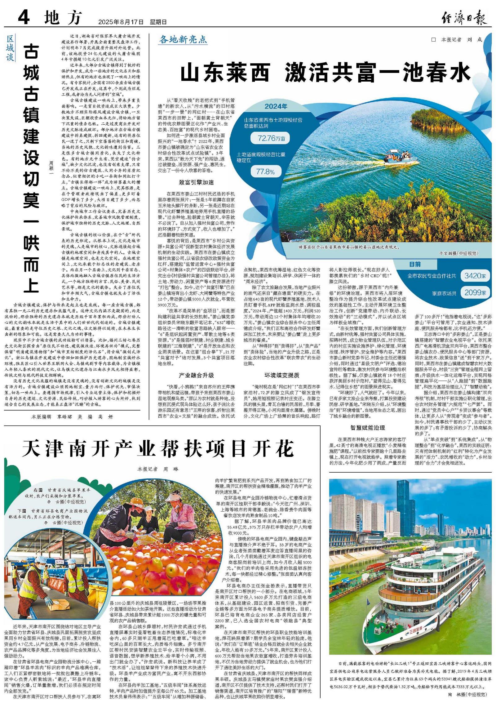 在甘肃省庆城县,天津市南开区的帮扶同样成果丰硕。庆城县玄马镇樊家庙村果农樊宾强介绍道,南开区不仅提供了技术支持,还帮村民们打开了销售渠道,南开区培育推广的“瑞阳”“瑞雪”新特优品种,也让庆城苹果收购价明显增长。